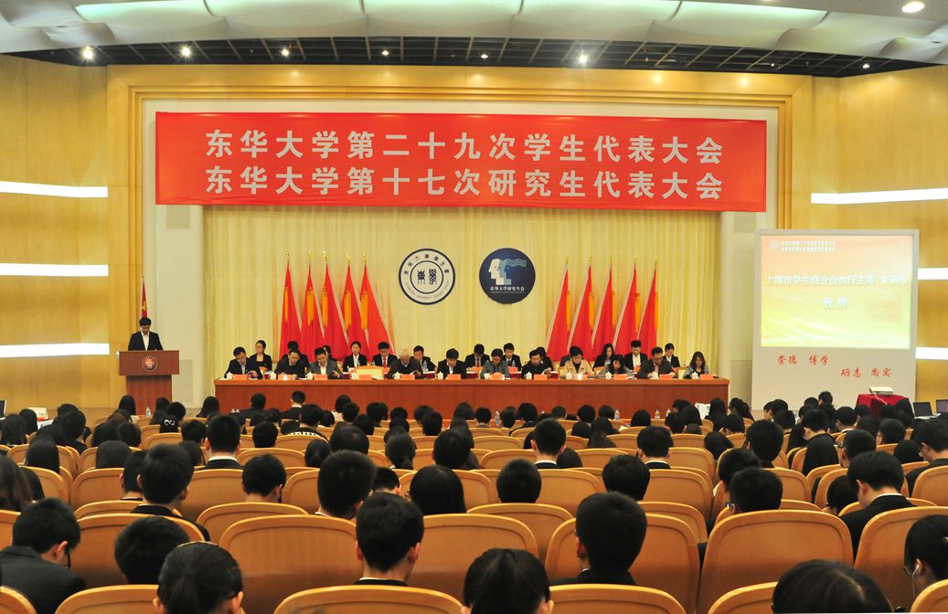 党委办公室、校长办公室、组织部、宣传部、教务处、学生处、研究生部、团委等有关部门负责人,上海市学联及兄弟高校学生会、研究生会代表,以及我校404名学代会、研代会正式代表与会。