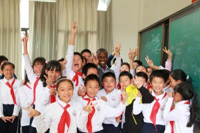图1: 首批“老外带你看世界”项目留学生赴东华附校讲