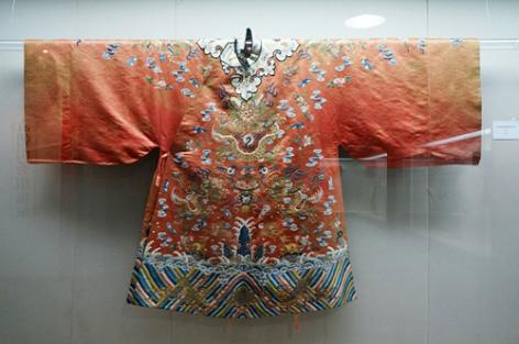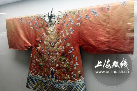 30 pieces of clothes, shoes and other accessories owned by noble women in Qing Dynasty are being displayed in the Shanghai Museum of Textile and Costume, which is located inside the Donghua University.