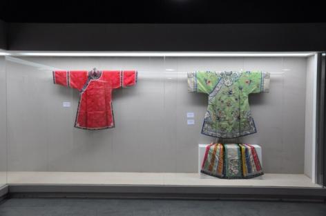 The exhibits, borrowed from a cultural relics collector in Beijing, are valuable in studying mutual influence on clothing between Han and Manchu peoples and of much aesthetic values, said Li Xiaojun, the exhibition designer.