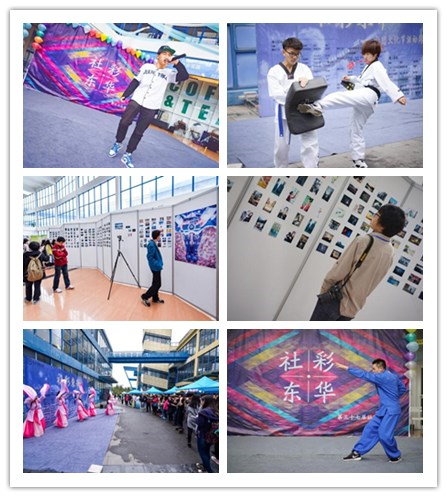 本次社团文化节的开幕式以社团集市的理念,将活动区域分为舞台区、展览区和摊位区三个区域,包含了53个不同类型的社团。在大学生活动中心外的摊位区,射击射箭协会、魔术社、美食社等37个社团以摆摊的形式,展现自身社团特色。而在室内外舞台区,羽楚汉服社、Miss Jazz舞社、轮滑社等9个社团凭借出色的表演吸引不少同学们驻足观看。室内展览区,摄影协会、刀笔油画社等7个社团的优秀作品在这里展出。