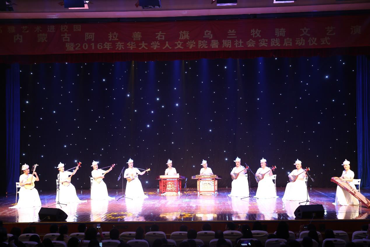 谈起促成阿拉善右旗乌兰牧骑来校演出,活动主办方、人文学院院长王梅芳表示,“这都得益于学院在社会实践工作上的有意探索。”2015年,人文学院为响应大力弘扬中华优秀传统文化的号召,精心组织暑期社会实践团深入内蒙古自治区阿拉善右旗,实地调研以世界非物质文化遗产——蒙古族长调为代表的阿拉善民族音乐传承现状。实践团聚焦蒙古族少数民族服饰、舞蹈、歌曲、乐器等民族文化符号,走访了蒙古长调培训基地、阿右旗蒙小学、中学和多个社区,开展涵盖民族文化考察、主题研讨、高峰论坛等内容的相关实践活动,取得了良好的社会反响和实践成效。实践团获评2015年“全国百强暑期实践团队”。
