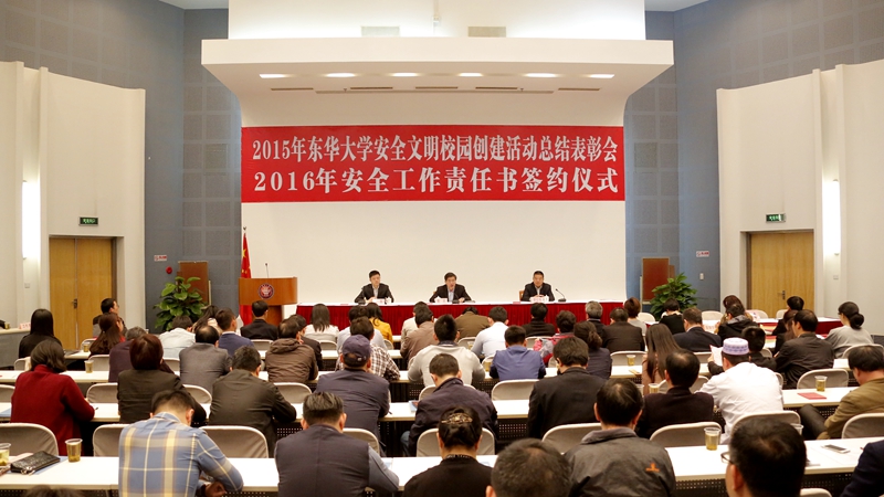 4月29日,学校2015年安全工作总结表彰暨2016年安全工作责任签约会在松江校区召开,校党委书记朱民出席并作重要讲话,党委副书记、纪委书记罗仪华、副校长陈革出席。会议由陈革主持。