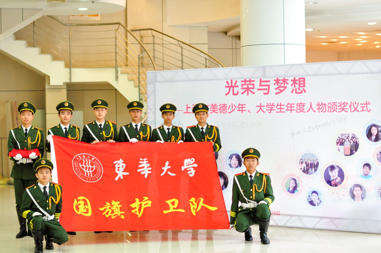 5月28日,由中共上海市委宣传部、上海市精神文明建设委员会办公室、中共上海市教育卫生工作委员会、上海市教育委员会、共青团上海市委员会主办的上海市美德少年、大学生年度人物颁奖仪式在上海教育电视台演播厅举行。我校国旗护卫队受邀参加,并出色完成了出旗任务,良好的精神面貌,整齐划一的动作,扎实的队列基本功,受到了现场观众的一致好评。