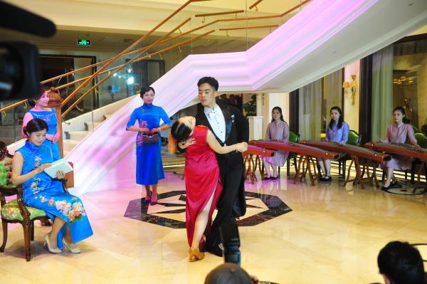 服装学院杨子田,艺术教育中心教师赵彦洁、周纪来及学校学生艺术团学生,共同为活动创作和表演了海派旗袍音乐剧。