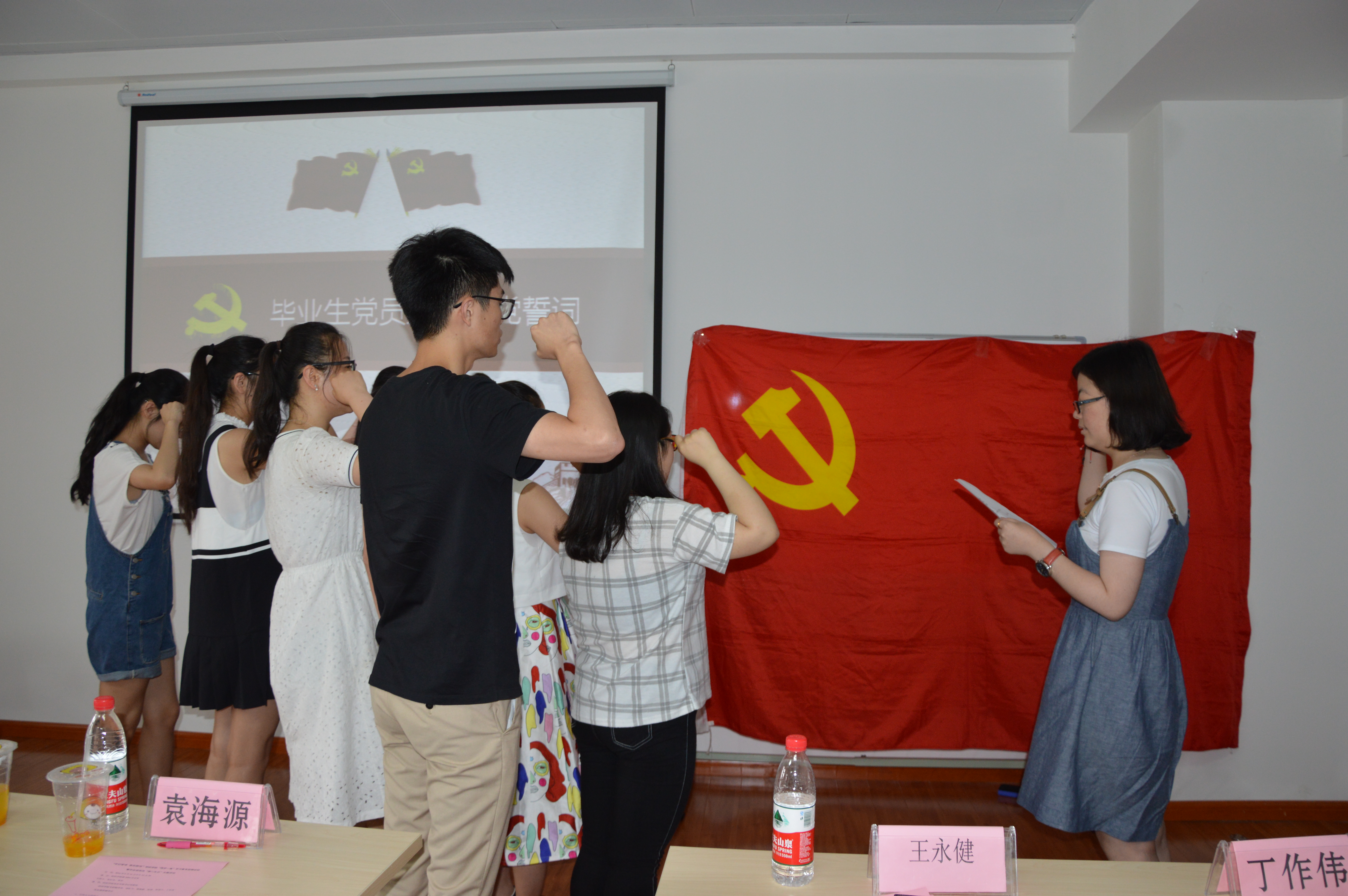 作为纺织学院党建品牌项目的党员“第二生日”主题活动已经成功举办过数届,众多党员在活动中受教育。为进一步增强毕业班党员的责任意识,纺织学院党总支特意为12级毕业班党员举办“第二生日”主题活动,毕业班党员在支部书记顾苑园的带领下重温了入党誓词,每位党员进行承诺践诺,表示会牢记党员使命,在未来的工作中将纺院的精神传播出去。刘雯玮、冉红卫以及袁海源3位老师为每位毕业班党员颁发了党员身份证与纪念品,勉励他们在以后的岗位上干出成绩,报效党和国家的栽培。活动中,15级硕士党支部的党员同志还为大家带来精彩的相声表演《成长的烦恼》,祝愿毕业班的党员在今后的成长道路上抛开烦恼、奋勇前进。