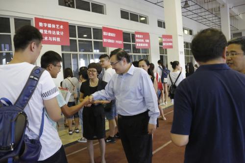 9月10日,东华校园迎来5417名2016级新生。3409名本科生和2008名研究生怀着憧憬和希望从祖国各地来到东华,开启他们崭新的大学生活。校党委书记朱民,校长蒋昌俊,党委副书记刘淑慧、崔运花,党委副书记、纪委书记金海燕,副校长刘春红、邱高、李永智等校领导先后来到迎新现场,分别在地铁站迎新点、新生报到处、慈善爱心屋、新生宿舍等处看望新生,慰问学生志愿者和迎新工作人员。