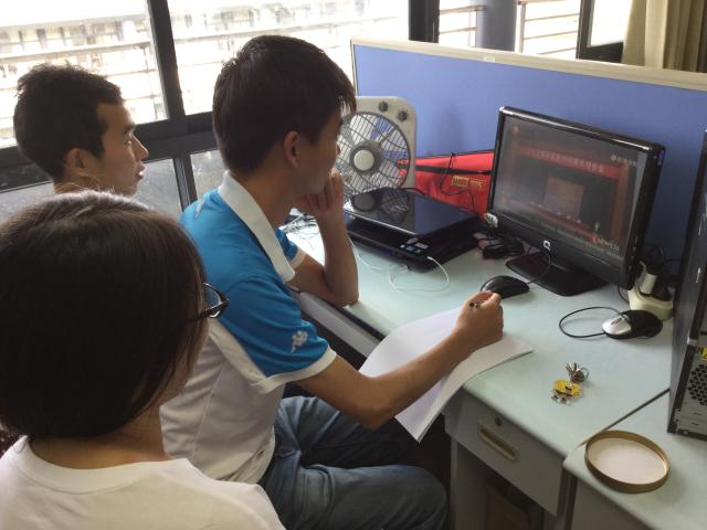 (信息学院研究生党支部通过网络电视观看直播。党员们认为,作为一名党员,更应该以史为鉴,时刻牢记长征精神,我们学习、研究长征精神,树立坚定的理想信念,做一名合格的党员。)
