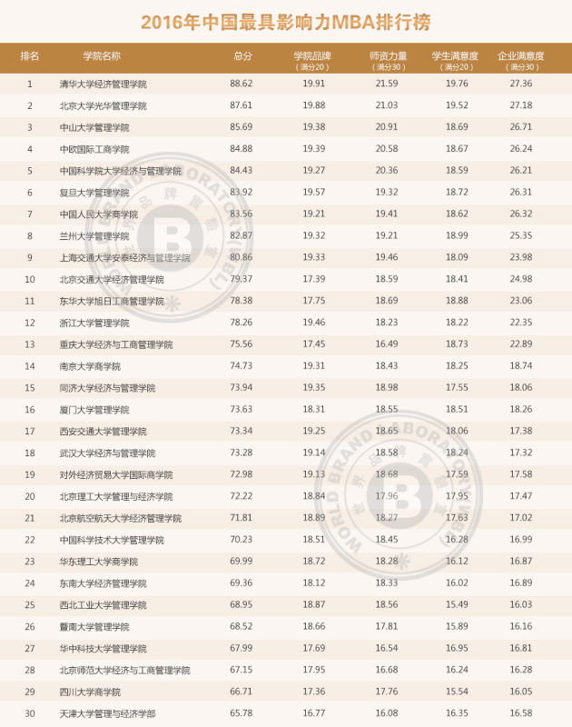 2016年中国最具影响力MBA排行榜揭晓 我校MBA项目蝉联“中国最具影响力MBA排行榜”第十一位