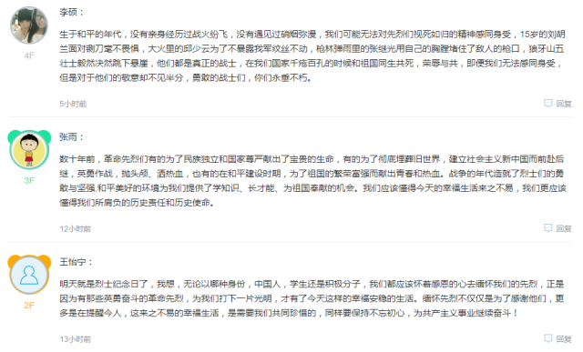 管理学院和环境学院利用易班平台开展“缅怀先烈,传承精神”的网上纪念活动。通过在易班平台上设置纪念专区,党员和入党积极分子结合自己阅读《长征》、收看“纪念红军长征胜利80周年报告会”等学习教育的体会,为革命先烈写下纪念文字,寄托对烈士光辉事迹和伟大精神的缅怀与崇敬。