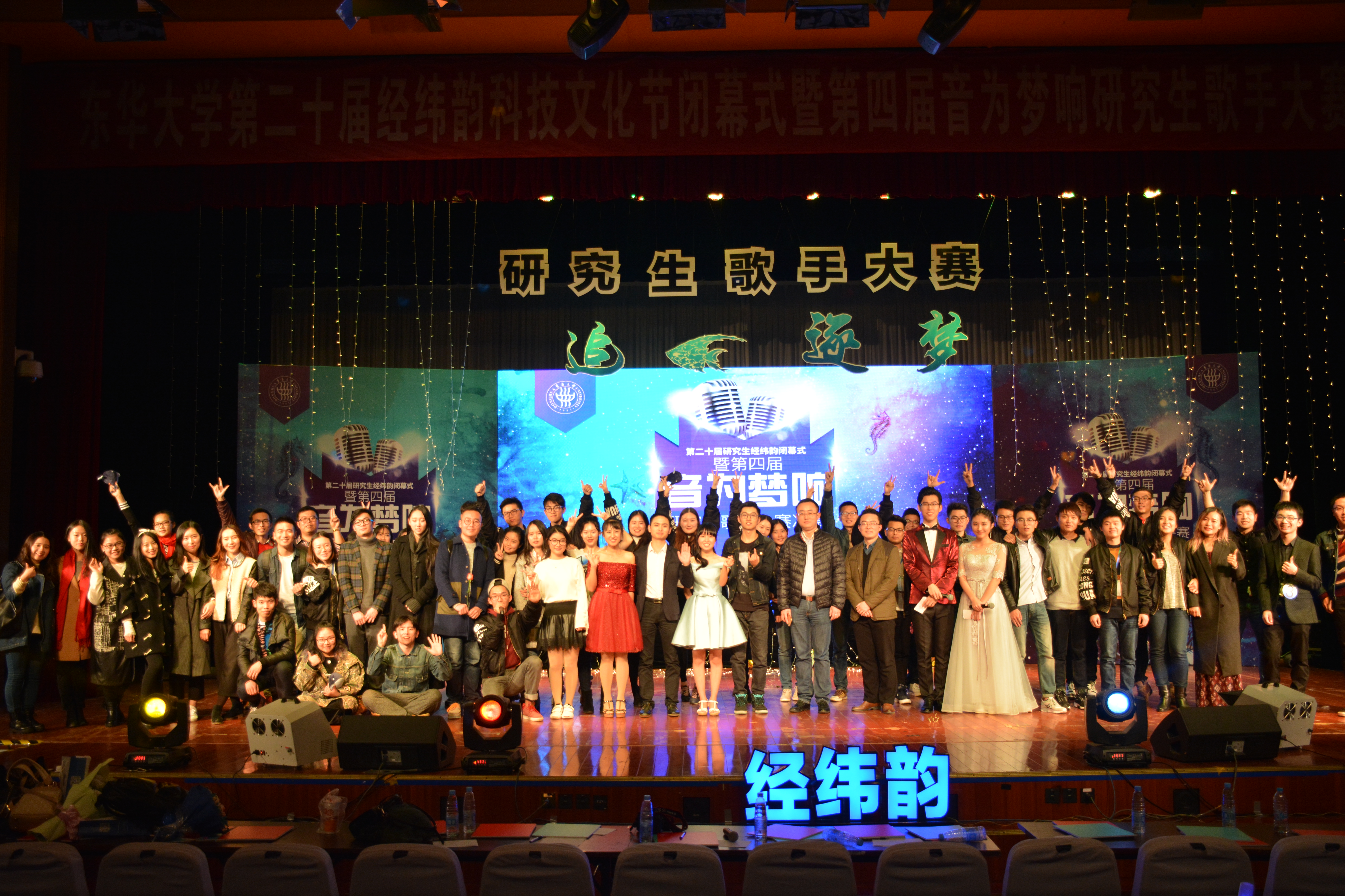 第四届研究生“音为梦响”歌手大赛经海选、初赛及复赛,共计13名选手角逐总决赛。旭日工商管理学院的王芳荣获冠军,环境科学与工程学院段博文、旭日工商管理学院的张擎宇分获亚军、季军。闭幕式上,还为研究生“学术之星”评选活动、“经纬韵”篮球、足球赛等“经纬韵”科技文化节子项目颁奖。
