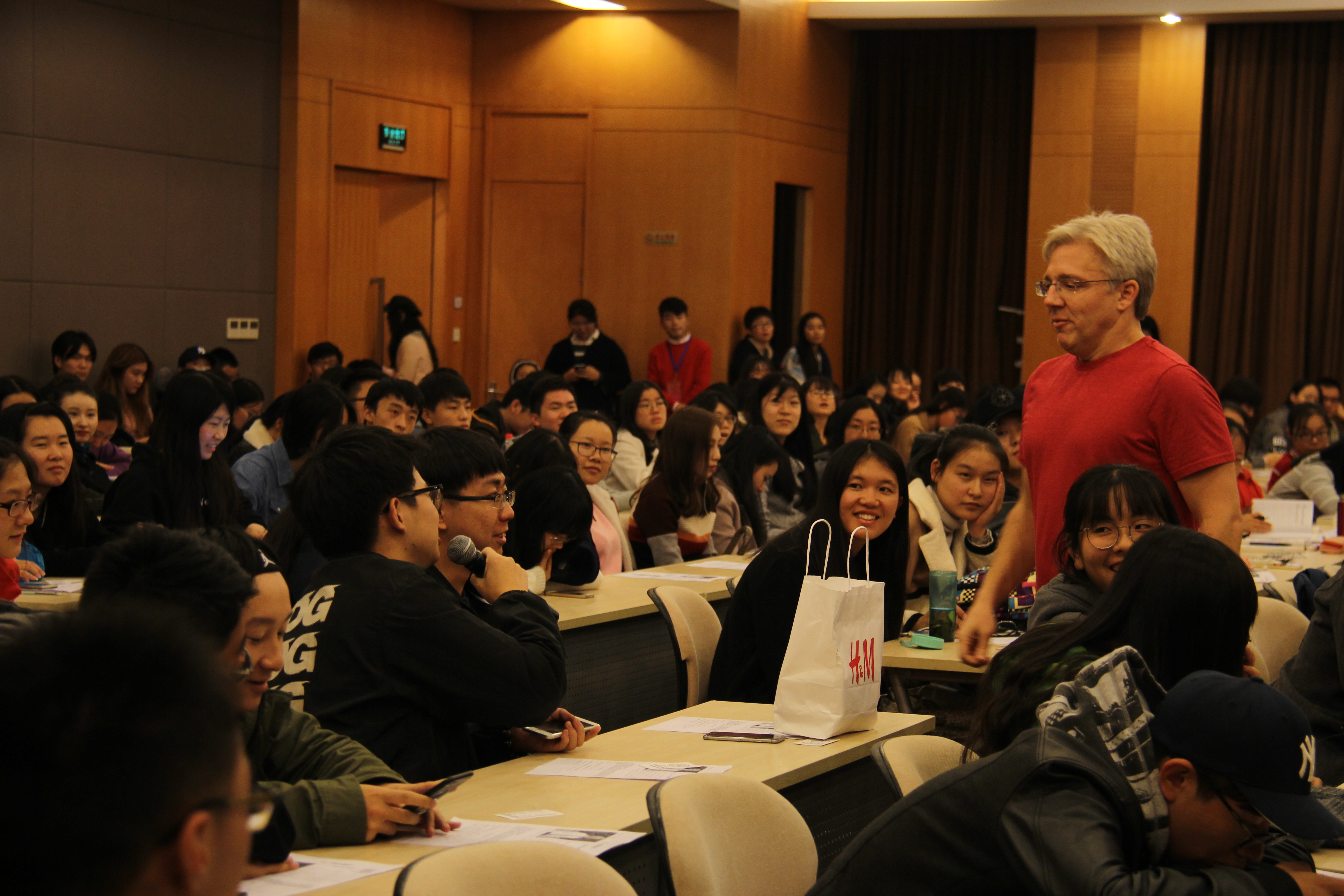 (嘉宾在博实大讲堂讲述中美跨文化交流经历)