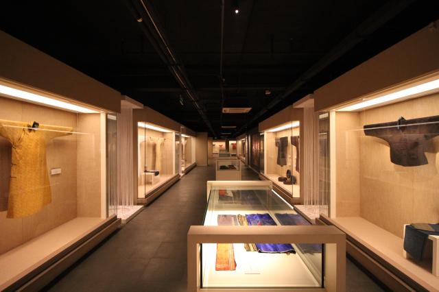 博物馆共分为科普馆、古代馆、近代馆、少数民族馆、视听空间、流动展厅等六个分馆,现有展出面积4600余平方米。科普馆以高科技展示手段和互动展项,展示纺织服饰领域的产业链及其特色环节;古代馆陈列了从先秦、秦汉、魏晋南北朝、隋唐、宋元到明清各个时期纺织服饰的图片和实物;近代馆展示了晚清至民国时期中国纺织服饰的实物;少数民族馆展示了少数民族绚丽多彩的服饰和纺织技术;视听空间,目前主要用于播放《纺织服饰探秘之旅》的环幕影片。