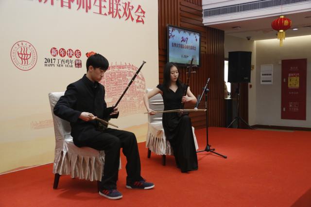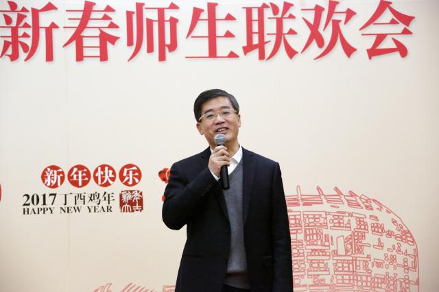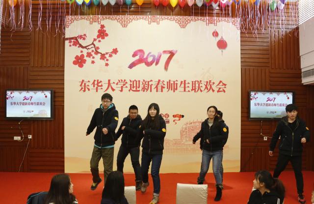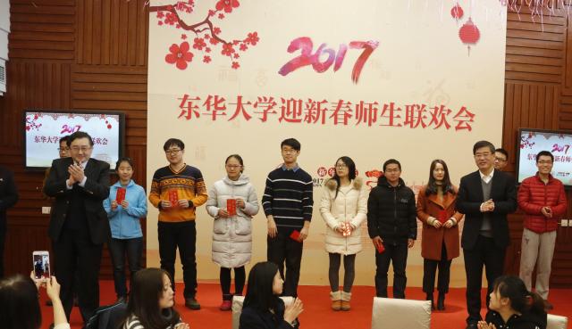 联欢会现场,朱民为师生送上新春祝福,衷心地祝福每一位东华学子在新的一年里更富创新精神,更注重实践能力的培养和锻炼,以优异的成绩迎接党的十九大的胜利召开。蒋昌俊发表新年致辞,祝师生新春快乐,在新的一年里再接再厉,用优异的成绩为国家建设和学校发展助力。