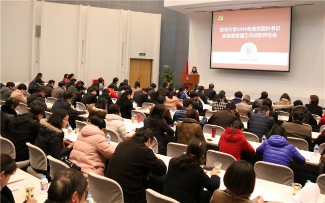 2月17日,学校党委在松江校区图文信息中心第二报告厅召开2016年度党组织书记抓基层党建工作述职评议会。党委书记朱民,党委副书记刘淑慧、崔运花,副校长李永智,各党总(直)支部正副书记、党委主要职能部门负责人、部分党代表参加会议,9位党总(直)支部书记进行了现场述职,党委书记朱民做点评和讲话。会议由党委副书记崔运花主持。