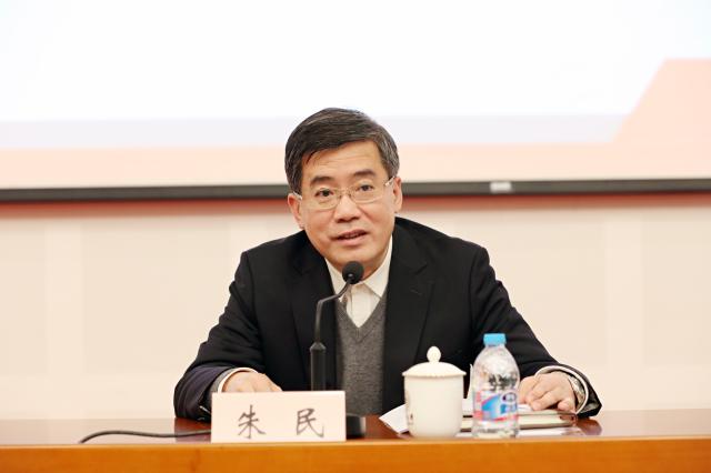 朱民强调,学习好、贯彻好全国高校思想政治工作会议精神首先要深刻领会和把握会议的精神实质,把“四个服务”作为学校的历史使命,把“四个坚持不懈”作为办学治校的行动纲领,把“四个正确认识”作为提高学生思想政治素质的重要原则,把“四个相统一”作为加强学校师资队伍建设的基本途径,把“五个深刻认识”作为统一学校干部师生思想认识的基本要求。其次要准确把握四方面的工作重点,即将立德树人作为学校的立身之本,坚持把人才培养作为中心任务,牢牢抓住全面提高人才培养能力这个核心点,并以此带动学校其他工作;充分发挥好思政课和各类课程的育人功能,进一步加强马克思主义学院建设,加强各类课程的教育教学改革,大力推进“思政课程”向“课程思政”的转变;着力创新学生的日常思想政治教育工作,推进思想政治工作尤其是网络思想政治工作改革创新;大力加强教师的思想政治教育工作,遵循思想政治工作规律和教师成长规律,把好教师的入口关、培训关、考核关、完善教师评聘和考核机制。第三要建成“大思政”格局,坚持教师和学生两大主体齐头并进,坚持学校党委、学院党组织和基层党支部三级联动,各级干部坚持“一岗双责”,努力构建全员全过程全方位育人长效机制,切实把思想价值引领贯彻教育教学全过程和各环节。