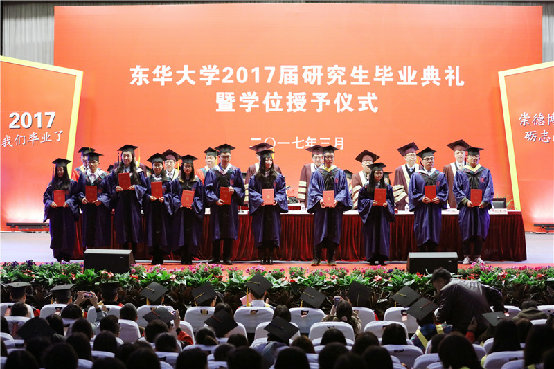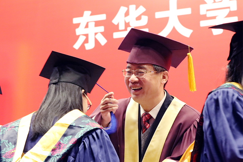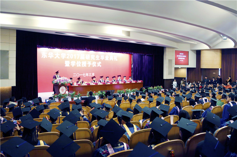 3月22日,我校2017届研究生毕业典礼暨学位授予仪式先后在松江和延安路校区举行,163名博士、987名硕士依依惜别母校,扬帆起航。校党委书记朱民,校长、校学位评定委员会主任蒋昌俊,中国工程院院士俞建勇,校党委副书记崔运花,党委副书记、纪委书记金海燕,副校长刘春红、邱高、李永智、卿凤翎、陈革出席毕业典礼。典礼由邱高主持,各院系领导、导师代表、全体毕业生和家长代表一起见证这一难忘时刻。