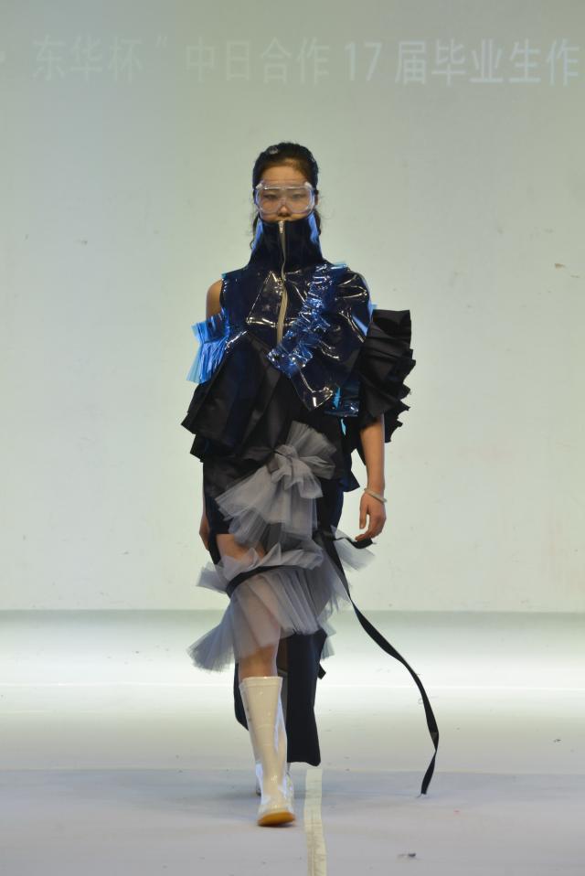 中日合作班自办学起便与日本文化服装学院合作,从服装设计理论到实际制版与制作能力的教学,均采用日本文化服装学院教学标准,致力将每一名学生的个人特色与特长发挥,培养学生独立完成从设计到制作的能力。2017届学生是中日合作班第11届毕业生。“3+1”的联合培养模式,带给中日合作班学生的不仅有出色的设计创作能力与制版制衣技术,更有国际化的视野和理念。这些作品均为他们在日本文化服装学院交流学习时期制作完成,这群年轻的设计师怀揣着对服装设计独到的理解与感悟,将设计思考、生活经历与文化态度融入作品中,风格鲜明,各具特色,体现了中日合作专业融创新性、时尚性、技术性于一体的办学理念,呈现了一场精彩纷呈的毕业秀。