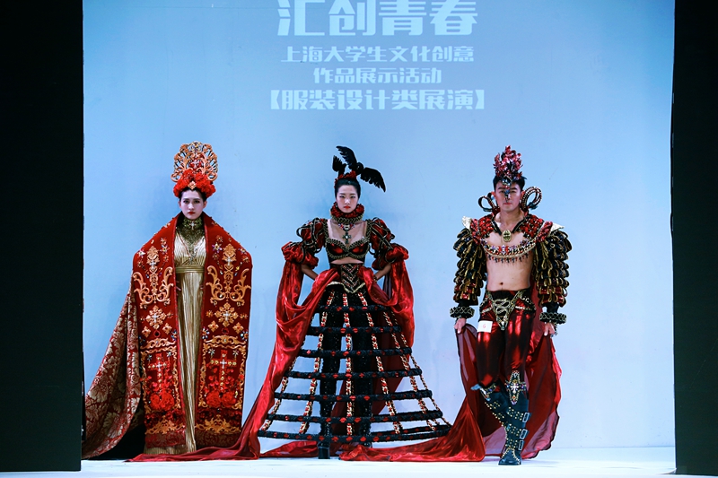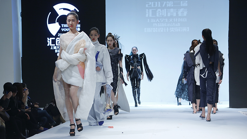 第二届“汇创青春”上海大学生创意展示活动服装设计类优秀作品展演在我校延安路校区精彩亮相,来自8所高校的55个系列165套优秀作品竞相辉映,整个活动与上海时装周融为一体,将持续至5月底。