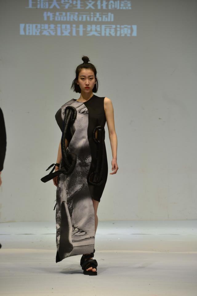 国际性与本土化相结合,时尚创新与文化传播相交融,教育与产业相合作,4月13日,第二届“汇创青春”上海大学生文化创意作品展示季“优秀作品汇展”服装设计类优秀作品展演活动在我校精彩亮相,来自8所高校的55个系列165套优秀作品竞相辉映,整个活动与上海时装周融为一体,将持续至5月底。我校党委书记朱民、党委副书记刘淑慧出席活动现场,上海市教委高教处处长桑标、我校教务处处长姚卫新及上海戏剧学院、上海工程技术大学、上海视觉艺术学院、上海商学院、上海电影艺术学院、上海杉达学院等参赛高校教务处、创新创业中心的领导嘉宾与众多专业人士和市民现场赏析这一文化艺术盛宴。朱民书记宣布活动开幕。