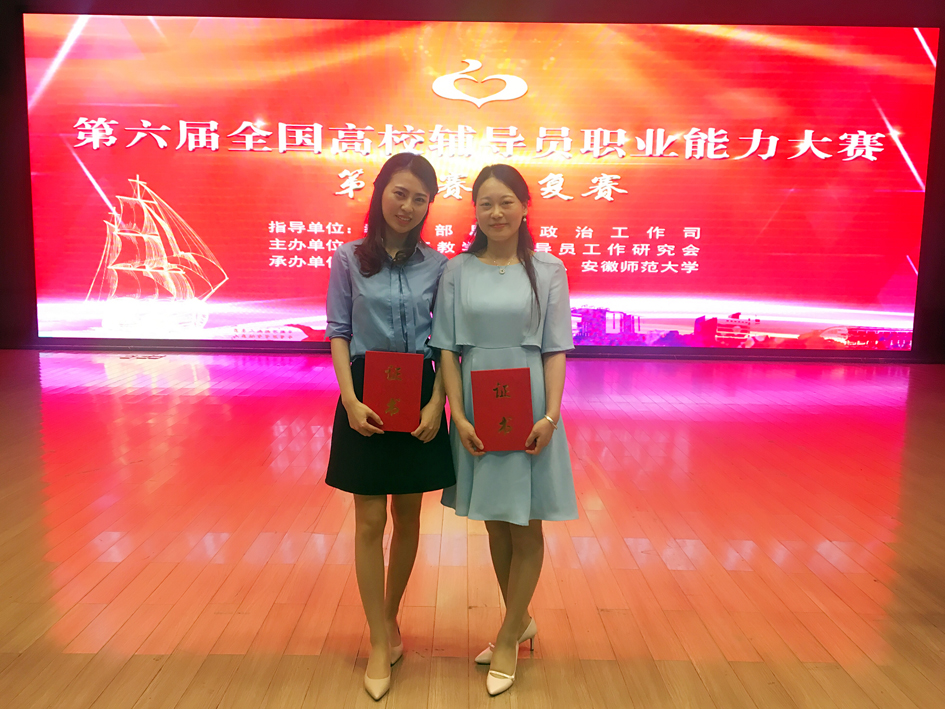 4月18日至19日,第六届全国高校辅导员职业能力大赛第六赛区复赛在安徽师范大学举行,我校计算机科学与技术学院辅导员黄铭心、环境科学与工程学院李玲以优异的成绩分获一等奖和三等奖,黄铭心进入全国辅导员职业能力大赛决赛。