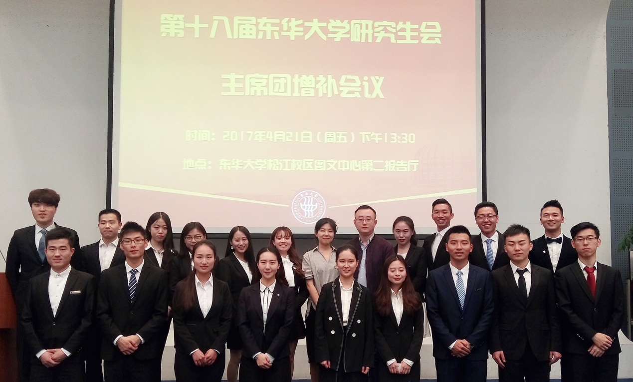 校研究生会主席许颖楠以《承前启后,行创实之风服务东华学子;继往开来,树坚定信念汇聚青春力量》为题,作第十八届(第一任)研究生会工作报告,全面回顾了校院两级研究生会一年来的工作,并结合共青团中央、教育部、全国学联印发的《学联学生会组织改革方案》的具体内容和相关要求,对未来的工作做出展望。
