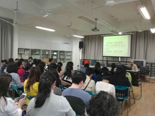 2017年5月,学院邀请贺善侃教授为全体教师作题为“新形势下高校思想政治工作的纲领性文件——学习习总书记在全国高校思想政治工作会议上的讲话精神”辅导讲座。贺善侃教授从此次会议的重要历史意义、为什么要加强高校思想政治工作、高校老师如何在思想政治教育中发挥作用三个方面,一步步深入浅出地解读全国高校思想政治工作会议精神。他说,立德首先立师德,树人首先树人师。他提出要从爱岗敬业精神、教书育人水平、为人师表的言行、教学作风等四个纬度加强师德建设,推进青年教师的思想政治教育工作。