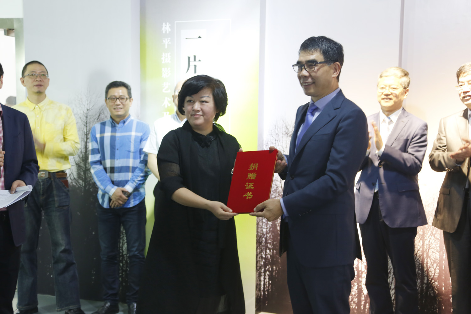 (刘春红副校长为林平先生颁发“上海纺织服饰博物馆捐赠证书”)