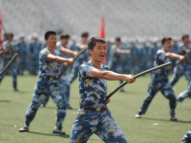 会上,由2016级参训学生组成的十七支连队接受了学校领导和部队首长的检阅。同学们步伐坚定地从主席台前走过,队列整齐,训练有素,“爱军习武,巩固国防,刻苦学习,报效祖国”的口号响彻体育场。阅兵式后,参训学生和武警官兵还分别进行了应急棍、匕首操以及擒敌格斗、刺杀等精彩表演,赢得了同学们阵阵掌声。