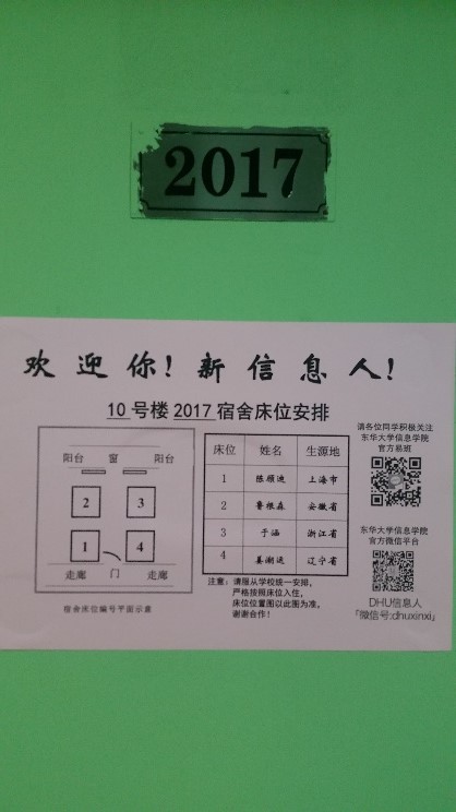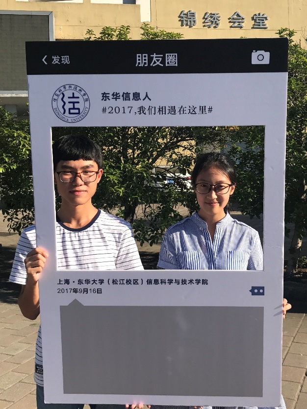 据悉,信息学院为了帮助新生更快融入学院大家庭,今年创新迎新工作方式。在校区和宿舍区主要路口安排志愿者手持指路牌,为新生指明新生报到和信息学院新生宿舍楼所在位置,让新生和家长们刚进东华就能直观感受到满满的信息元素;志愿者拿着东华信息人朋友圈kt板在锦绣会堂或者学院楼门口可供新生和家长们合影留念,强化新生作为东华人信息人的身份感,帮助新生早日树立东华人信息人的主人公意识;在每一间新生宿舍门上已经贴上信息人的专属门贴,给他们家的温馨,并且门贴上除了新生姓名和生源地还有学院易班和微信二维码,帮助新生通过网络更快地了解学院资讯,更好地融入大学生活。