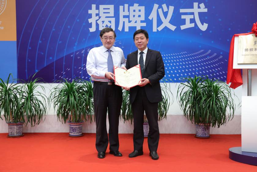 仪式上,干频代表上海市科委对我校纺织科创中心的成立表示祝贺,对中心成立的学术价值、社会意义给予高度赞赏与肯定。他希望中心加快纺织高新技术的研发、科技成果的转化,推动产学研合作,进一步提升我国纺织科技领域的学术水平,加快高水平纺织科技创新人才培养,为我国发展成为国际纺织教育和学术交流中心、为上海建设具有全球影响力的科技创新中心作出积极贡献。