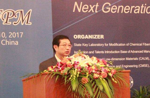 我校副校长邱高为大会致辞,他代表学校向与会者表示热烈欢迎,并介绍了今年大会组委会特别设立的“钱宝钧纤维奖”设奖情况,相信“钱宝钧纤维奖”将在传承钱先生的事业和精神,促进纤维材料领域人才培养和科学研究方面发挥重要作用。