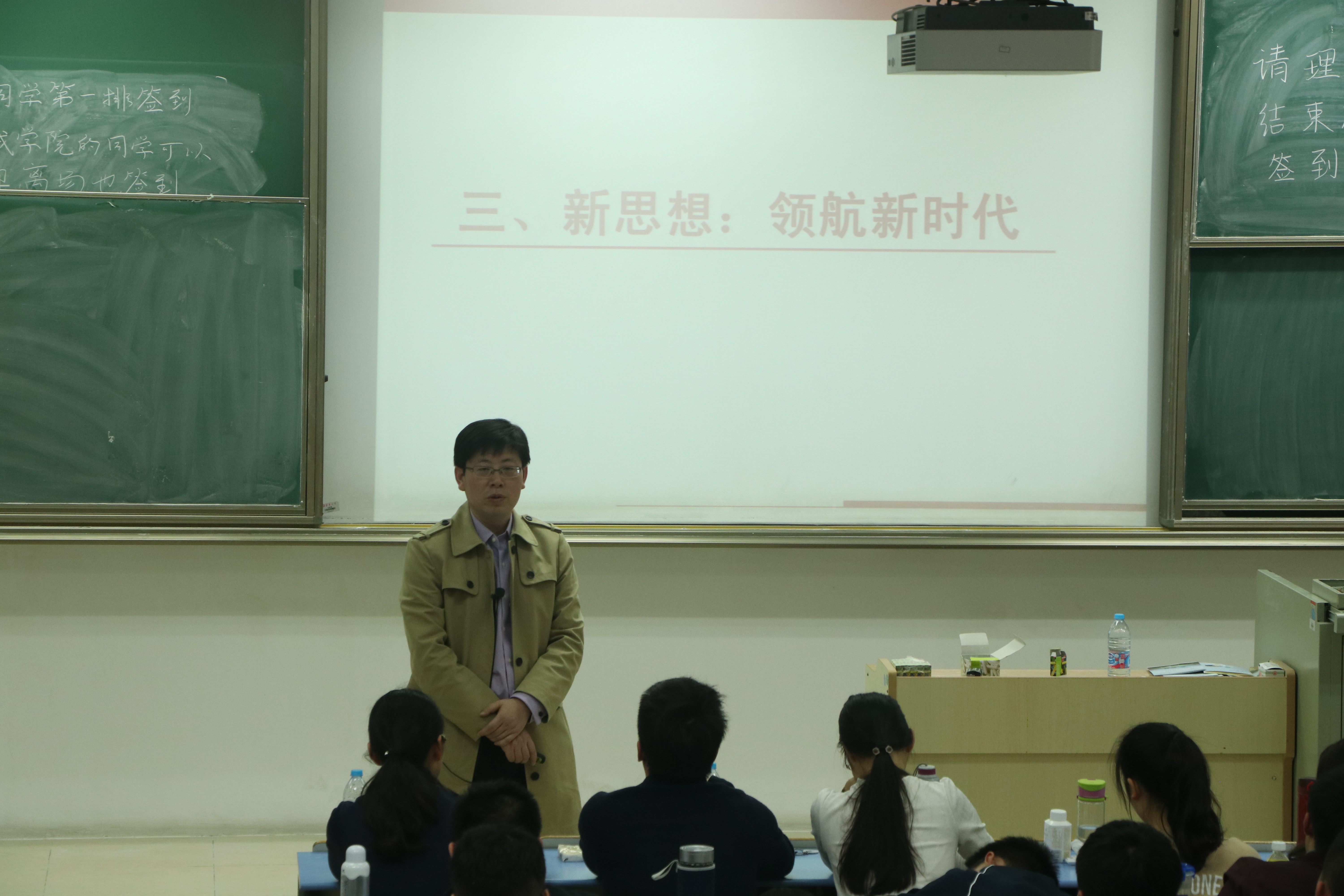 讲座伊始,陈超与同学们共同回顾了党的十九大历程,并围绕着“新时代:标注历史新坐标”“新使命:推进‘四个伟大’”“新思想:领航新时代”“新征程:开启历史接力赛”等四个方面对党的十九大报告进行了系统深入的讲解和分析。陈超指出,党的十八大以来,中国在经济建设、全面深化改革、全面从严治党等十大方面都取得了巨大成就,中国离世界发达国家的差距正不断缩小,我们要牢记使命、不忘初心,在中华民族伟大复兴的历史征程中贡献青春力量。在谈到中国共产党对于中国特色社会主义现代化建设的重要性时,陈超以当今巨大的反腐力度为例说明了中国共产党对于自身建设的重视。他特别提到:“没有一项使命,比实现人民共同梦想更加崇高,只有坚持中国共产党的领导,才能完成当今时代的新使命”。