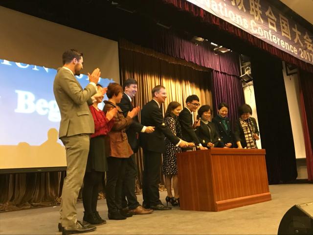 11月16日到19日,我校第九届模拟联合国大会(以下简称为“模联”)在延安路校区举行。此次大会以“Think Differently, Act Globally”为主题,吸引了来自澳门大学、布鲁塞尔自由大学、大连海事大学、华东理工大学、华东政法大学、雷恩第一大学、鲁汶大学、米兰大学等40余所高校近200多名海内外大学生参加。