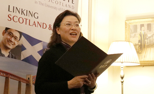 崔运花副书记与中国驻爱丁堡总领事馆孙旭东副总领事(右二)交流