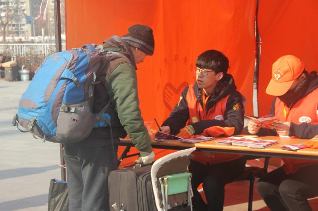 一阵寒风吹过,铁路上海站南北广场志愿者岗亭内的志愿者一阵哆嗦,连忙原地抖了抖身子。这是今年新增的志愿者岗位,为还没有进站的旅客及刚刚出站的旅客提供咨询、引导和紧急安全服务。为更好服务旅客,普及铁路知识,东华“小甜橙”团队与铁路上海站共同设计制作了《上海站服务指南》,在“甜橙”岗亭处发放,该指南囊括站区平面图、车站服务介绍、购票服务介绍、携带物品要求、周边交通信息以及六年来“甜橙”志愿者服务过程中整理的旅客常见问题,实用性非常强,该服务指南一经推出,便受到站点工作人员和旅客的一致好评。