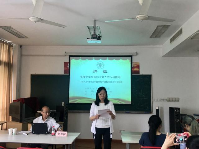 贺教授关联国际与国内、结合理论与实践,围绕“我国社会主要矛盾新判断”、“‘四个全面’战略布局宣示我党治国理政全新格局”、“完善和发展中国特色社会主义制度、推进国家治理体系和治理能力现代化”、“推动构建新型国际关系,推动构建人类命运共同体”等方面,着重对习近平新时代中国特色社会主义思想的核心要义和创新点等方面做了深刻阐释。他讲到,习近平新时代中国特色社会主义思想的形成背景是中国特色社会主义进入新时代,其思想内容丰富、涵义深刻,集中体现在党的十九大报告精辟概括的“8个明确”和“14条基本方略”中,具有很高的前瞻性、战略性和指导性。