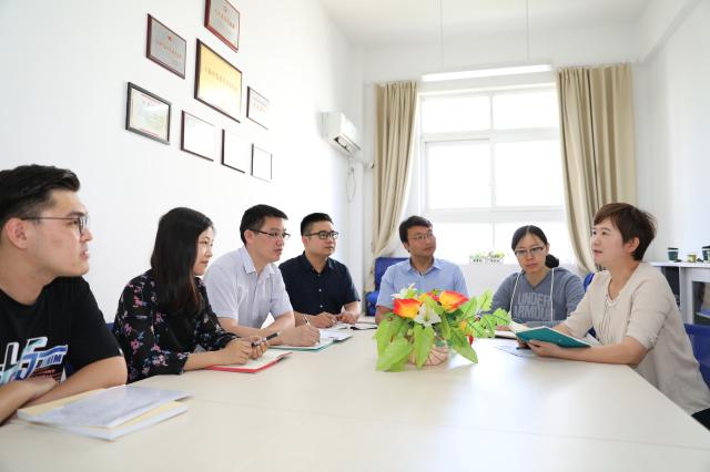 (罗薇娜(右一)与辅导员团队研讨工作)
