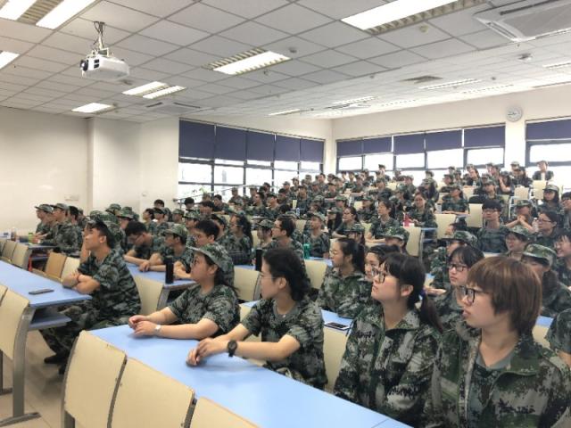 学校组织2017级军训学生开展国防教育主题讲座