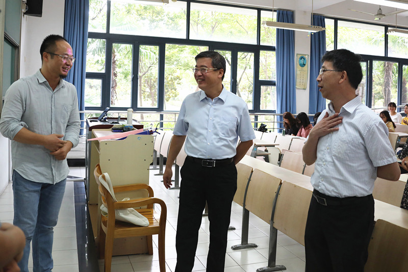 在青年教师吕宏展讲授的《机械设计》课堂,朱民特别关心本科基础课程的教学实施情况。他强调,要贯彻全国高校本科教育工作会议精神,始终坚持“以本为本”,把本科教育放在人才培养体系的核心地位、教育教学的基础地位。广大教师特别是青年教师要围绕立德树人根本任务,立足课堂教学主渠道,抓牢抓实抓好基础课程教学,让课堂“严”起来,让课程“实”起来,让教学“活”起来,不断提升基础课程教学的“含金量”,引导学生夯实专业基础、激发专业志趣,通过刻苦读书、努力钻研,求真学问、练真本领。