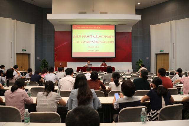 为进一步贯彻落实教育部党组以及上海市教卫工作党委关于“深入学习贯彻习近平总书记在纪念马克思诞辰200周年以及在北京大学师生座谈会上重要讲话精神的学习”的通知要求,按照我校《关于开展“学习新思想千万师生同上一堂课活动”的实施方案》,9月12日,机关党工委开展了“学习新思想千万师生同上一堂课活动”,邀请我校“习近平总书记重要讲话精神讲师团”成员贺善侃教授,为机关党员作“实现中华民族伟大复兴的行动指南——深入学习习近平新时代中国特色社会主义思想”的辅导报告,引导机关党员深入领会习近平总书记重要讲话精神,学有所得、学有所悟。机关党工委书记陈雪虹主持报告会。