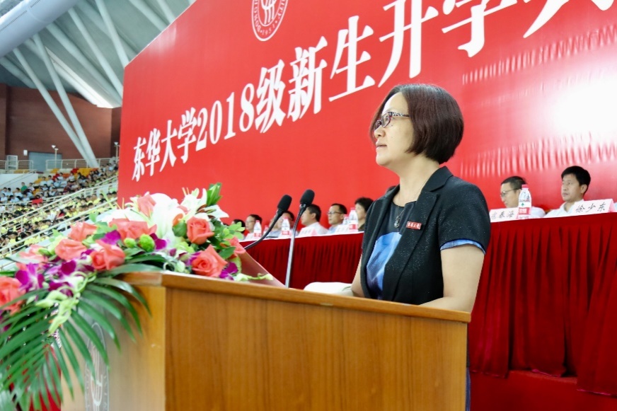 在座的你们,有进入东华大家庭的第一批“00后”,你们是崭新的一代,如四季之春、一日之晨。青春短暂,岁月有痕,期盼你们能带着扬在脸上的自信、融进骨血的勇气和刻在心底的善良去迎接崭新的生活,真正成为一个有大爱、有大德、有大情怀的人!衷心祝愿你们乘风而上,传承国家、时代赋予你们的责任和使命,传承父辈们的希望和梦想,让梦想在东华启航!谢谢大家!