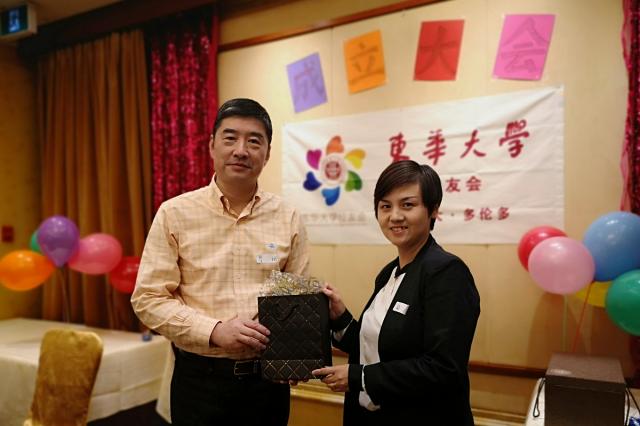 褚晓晔代表加拿大校友欢迎母校老师们的到来,还详细介绍了加拿大校友情况及校友会成立筹备过程。