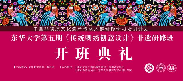 10月15日,我校第五期中国非物质文化遗产传承人群研修研习计划《传统刺绣创意设计》研修班开学典礼在延安路校区举行。党委副书记刘淑慧,上海市文化广播影视管理局副局长王玮,贵州省非物质文化遗产保护中心副主任龙佑铭,服装与艺术设计学院院长李俊及全体非遗研修班学员和教师代表参加活动。