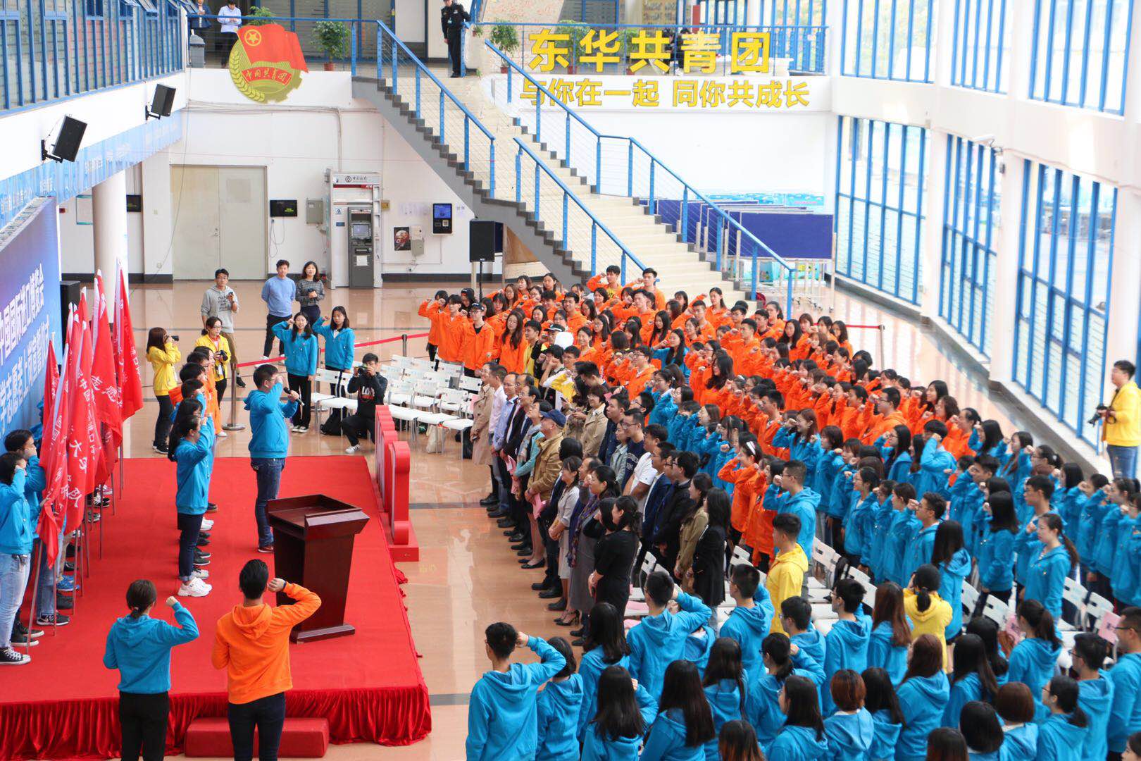 (各学院志愿者代表接旗并宣誓)
