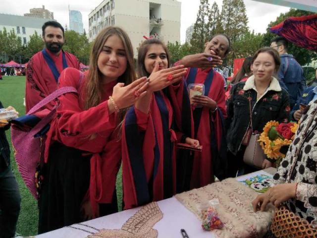 来自贵州的非遗文化传承人研修班也参加了此次文化节的展示活动,她们向各国留学生展示了贵州刺绣非遗技艺,这是继她们的作品先后在上海市优秀非遗研培成果展、斐济时装周、米兰时装周等展出以来,又一次集中展示,受到了外国留学生们的热烈欢迎,把中国的民族传统文化发扬光大。