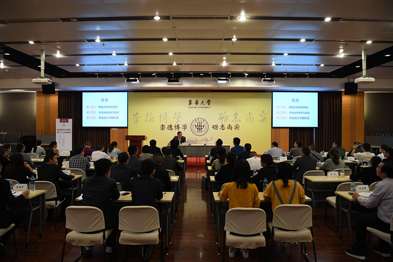 10月24日,校长蒋昌俊在延安路校区第三教学楼演讲厅为近50名来自盐津县委县政府各委办局、乡镇、村社区以及人大、政协、两院等工作骨干带来了一场聚焦互联网金融发展的专题讲座。此外,专门来聆听讲座的还有7名同样来自盐津的初中骨干教师,他们作为第四批盐津教师正在东华附校开展为期一个月的跟岗培训。
