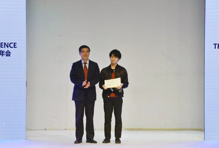 (校党委书记朱民为大赛一等奖获得者西村健太颁奖)