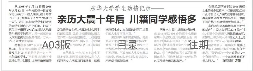 [新民晚报数字报等]亲历大震十年后,川籍同学感悟多