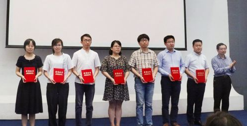 (党委副书记刘淑慧(左一)为获奖代表颁奖)
